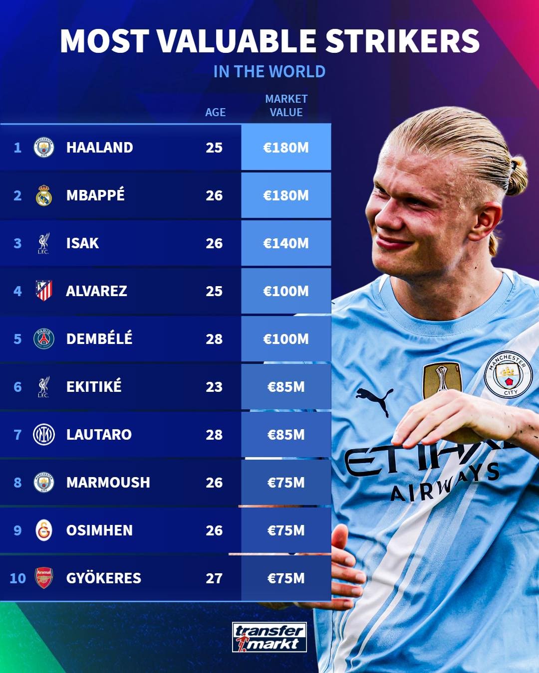 看一场英超比赛,从禁区外看到哈兰德那种一脚定命的样子,你还会相信什么数据表吗?曼城前插、加速、身体对抗,那个在门线上仿佛有GPS的射手就是资本喜欢的样本。德转这次又更新了所谓的中锋身价榜,哈兰德被标注1.8亿欧,和另一位球星并列,数字漂亮,现实舞台上也好看,曼城的锋线论资排位在英超里还能顶半个赛季话题冠军。